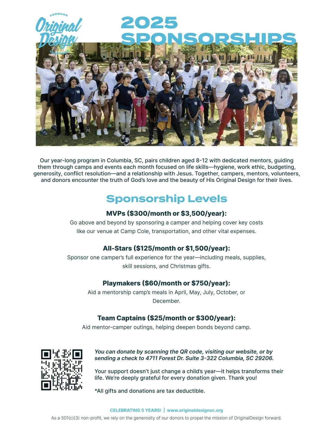 Whether you're an individual or a business, there are meaningful ways to support the mission of Original Design. From volunteering your time to partnering through sponsorship, you can choose the level of involvement that works best for you. Donations are tax-deductible.